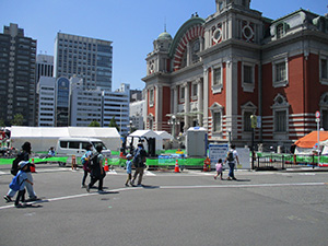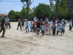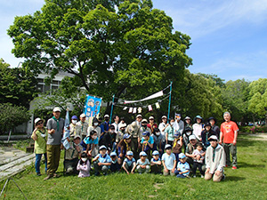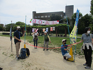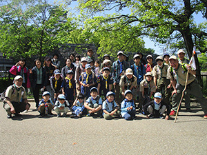 GW行事第2弾、恒例セブンアワートライアル。今回は大阪城〜大物公園までの16kmに挑戦。集合場所の大物公園から足慣らしでJR尼崎駅に移動。電車で大阪城公園まで移動。観光客でいっぱいの大阪城から五月晴れの心地良い風に吹かれて5つのグループに分かれて歩き始めました。天満橋から天神橋、イベントで賑わう中之島公園を軽やかに歩き、予定より早く下福島公園に到着、ここで昼食です。前回は雨の中、立ったまま濡れながらおにぎりを食べましたが、今回は全くの正反対。食後、出発し阪神野田駅でリタイヤ組と別れる予定でしたが、ギャング・幼児組とも続行を宣言そのまま歩きました。760mの淀川大橋、神崎大橋、左門殿橋を渡ると見慣れた尼崎のまちなみです。大物公園ではゴールゲートの設置も終り到着を待っています。そして、14:20大物公園に帰着、栄光のゴールゲートを参加36名全員がくぐりました。疲れましたがいい気持ちです。閉会式のあと新入隊員の「やくそく」をしました。今回2回目の参加で歩き通した元気な男の子です。(K3)