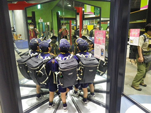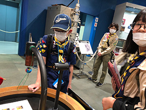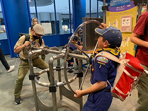 春の心地よい晴天の中ハイキング!の、予定だったのですが無念の雨。20団さんと一緒に、大阪市立科学館へ行くことになりました。それでも『ハイキング』は諦めていません。地図を見て組ごとに科学館へ向かい、館内ではハイキングに重要な『記録』を行います。見たこと、聞いたこと、感じたこと…途中プラネタリウムやサイエンスショーの見学もしながら、組ごとに沢山記録をしていきます。結果は…より多くの記録を残した、くまスカウト3人の1組が今年初の優秀組をゲットしました。ハイキング用に非常食として持ってきたお菓子は、帰りの出発前にみんなでシェアをして食べました。(M34)