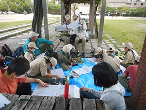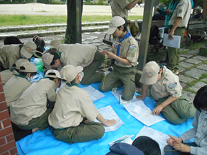 ボーイ隊の今月のテーマは「クルーとの初めての旅」。5月28日に宝塚中山にハイキングを計画しており、それに向け本日の隊集会はコンパスを使っての地図読み、方位、座標の確認などの基礎訓練。「北東の方向」と「東北の方向」の区別もままならないスカウトも徐々に慣れてきて、「南南西」と「西南西」の区別などもばっちり。座標の読み方も習得し、いざハイキング完歩を目ざします。(KTC)
