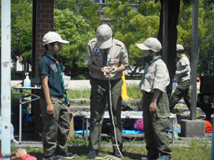 本日のボーイ隊は7団体験入隊の奉仕です。5名のスカウトが参加し体験入隊のお手伝いをしました。午前中はビーバー隊・カブ隊・体験者の方々と交流しながらレーシングカー作り。午後からは練習したロープワークやテントの用途・構造の発表です。ボーイ隊の活動が少しは知ってもらえたかと思います。緊張しながらも一生懸命発表するスカウトに皆さんから温かい拍手をいただきました。(Hmm)