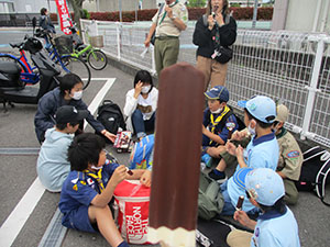 GW活動第1弾、スカ鉄チャレンジです、今回は大阪駅地下ホーム新設により、尼崎〜大阪〜新大阪〜放出〜木津〜天王寺〜京橋〜加島までの140円大回り。途中スイスイと予定通り、学研都市線では同じ鉄ちゃんらしい同年代の子どもとも交流し、木津駅へ到着。少し早めの昼食をホームの端っこでとり、おやつ交換で盛り上がりました。そこからまた、大和路快速に乗り、天王寺へ。事故で遅延がありましたが、環状線に乗り換え京橋駅、そして、最終コースの東西線加島駅に向かいます。予定より早く加島駅に着き、大回り切符の手続きで140円乗車を終了しました。まだまだ早いので、3日のリハーサルを兼ねて一駅区間を歩くことにして、これもなんなく歩き通しました。ご褒美のアイスつきです。(K3)