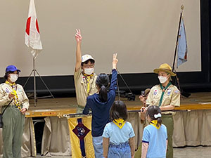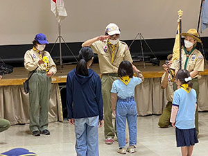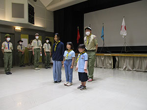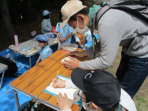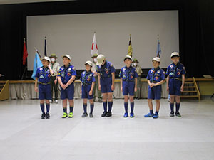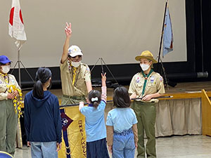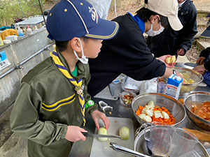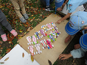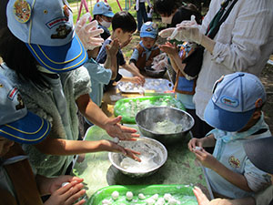 2023年度最初の隊集会が各隊それぞれの場所で行われました。ビーバー隊は大物公園で、体験1名を加えての集会を実施しました。最初団体験用の工作F-1作りです。紙を切り色を塗って、PPキャップの車輪をつけたら完成です。小一時間で、すべり台で試験走行をしました。それから野草探検隊に変身、しろつめぐさ、タンポポ、ひなげし、カタバミなどのかれんな草花を見、すずめのエンドウを見つけたり、そして何より、きょうのおやつの白玉団子にかかせないヨモギをきれいなところから採集し、帰ってきました。お昼は久々のオニコン。隊長のおにぎりに一番近い重さのおにぎりが優勝です。みんな日頃より大きなおにぎりで挑戦し、187gが一番になりました(ちなみに隊長おにぎりは262g)。昼食後、きれいにきれいに手を洗い、消毒しダンゴ作り。前回の泥ダンゴ作りの腕前でたくさんのダンゴを丸め、よもぎ入りと白をおいしく頂きました。(K3)