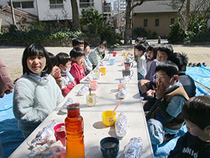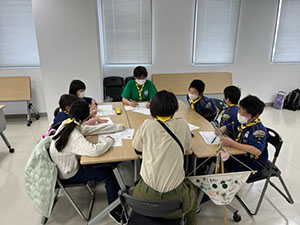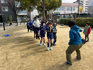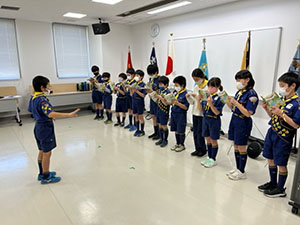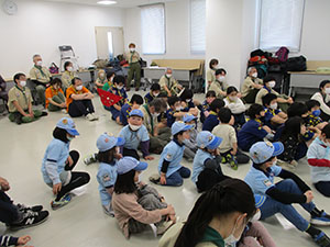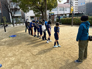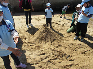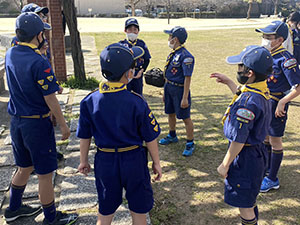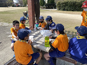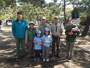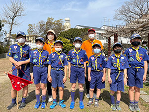 2022年度最後の隊行事「オワカレーハイク」を超快晴のもと、3年振りに甲子園浜で行いました。総勢31人がセンバツ高校野球大会で賑わう阪神甲子園駅から、甲子園浜まで歩き、海浜センター見学後、浜で遊びました。まだまだ海水温は低く、カニもヤドカリも見つかりませんでしたが、春風を感じながらマスクを外し、磯の空気を吸い込みました。お昼は、恒例オワカレー。お腹いっぱいになったところで、再び砂浜で砂山作り競争をしました。そしていよいよフィナーレです。前回隊集会での卒業・上進・入隊試験の結果発表。全員合格で、みおりちゃんとひなたちゃん、なるちゃんがカブ隊に上進します。そして、5名がビッグビーバー、2名が新ビーバー、4名がギャングビーバーとなります。いいお天気で、上々の最終行事でした。(K3)