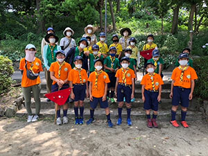 7団と20団で合同でミステリーハイクを開催。それぞれ別のルートで目的地を目指して謎解きと電車の旅の始まりです。まず最初の謎を解いて「大正駅」へ、そして更なる謎解きをクリアして全組無事に目的地の「千島公園」にたどり着きました。その後公園内の昭和山に登り頂上で最後の課題を終え、全組一斉にご飯の歌を歌ってから昼食。その後いよいよ本日の表彰式。20団カブ隊隊長から「組のまとまり」をほめられて7団2組が最優秀組! 記念に20団副長お手製の記念品をいただきました。おめでとう! 帰りはちょっと寄り道して船に乗り、弁天町駅で20団さんとお別れして帰途に着きました。20団さん今日はありがとう。また一緒に楽しもうね。(29Da)