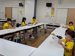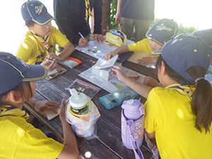 今日はみんなが楽しみにしている夏舎営の準備です。前半は、まずしおりを配布してもらって行き先などの説明です。今回のテーマはきらめき・ピチピチ〜海の不思議を解き明かせ~です。なんかワクワクするテーマですね。海の舎営も久しぶり。次は事前に準備した持ち物の確認です。今日は忘れても当日忘れなければ大丈夫だよ。しっかり確認して忘れないようにね。あと舎営では包丁も使いますので扱い方の説明と鉛筆削りでカッターの使い方の練習をしました。みんなぎこちなくてヒヤヒヤしましたが、なんとかできました。後半は、保護者説明会があり隊長とDLはそちらに参加。残された副長とスカウトたちでスタンツの準備です。内容は秘密なので当日が楽しみですね。最後にソングの練習をして終了。当日まで体調を崩さず元気で全員参加できますように。(yukko)