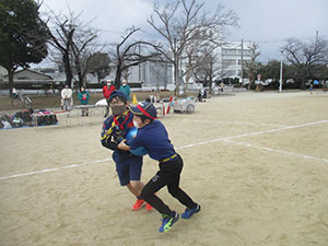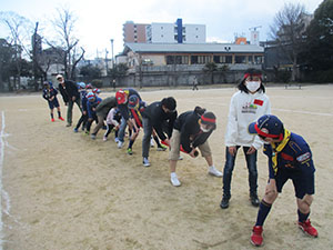 午前中は快晴無風で絶好の運動会日和。恒例の合同運動会を体験募集を兼ねて稲川公園で行いました。人数は少なくなりましたが元気さはそれをカバーしても有り余る物があります。ラジオ体操から始まり、赤白2組に分かれてボール送りや、フラフープ送り、障害物競走、キャタピラー競争、綱引き等々たっぷり2時間楽しみました。終了直前、突然の天候急変でみぞれ模様、セレモニーもそこそこに昼食のため大物公園に帰りました。体験の年長さんもたっぷり楽しんでいました。(K3)