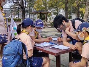 70周年を記念した市内ハイキングということで、各組事前に決定したコースをもとにハイキング。出来るだけたくさんの公園を巡ることが高得点への鍵ですが、さて、結果は…? 土地勘のない場所も多く、7団は苦戦を強いられどちらの組も時間通りに到着ならず…! しかし、両方とも最後まで挫けずゴールしました。(M34)