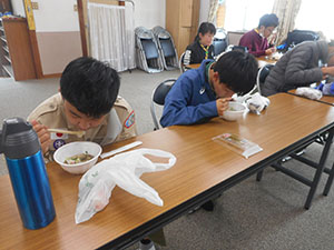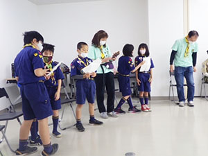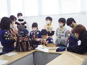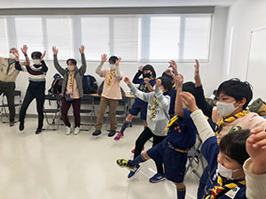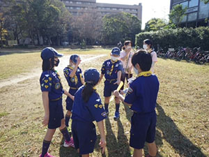 2022年最初のボーイ隊新年集会は、カブ隊月の輪スカウトと一緒に昔ながらのお正月遊びです。セレモニー後早速凧作り。今年の抱負や好きなことを文字に表し、障子紙と竹ひごでダイヤ凧を作ります。1時間ほどで全員よく揚がりそうな?凧ができあがりました。楽しみにしていた百人一首の坊主めくりやunoでは月の輪スカウトと共に大盛り上がりです。手早く昼食の春の七草入り雑煮を作り、午後から河川敷にていざ凧あげ!のはずが残念ながら微風です。抱負に「宿題」と書いたスカウトは、宿題に追われてるーと叫びながら走り回っておりました。今年こそ充実したスカウト活動ができそうな穏やかな冬日和の楽しい1日でした。(ヒラマー)