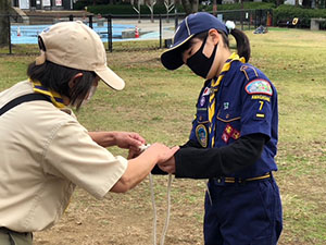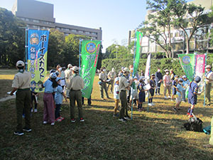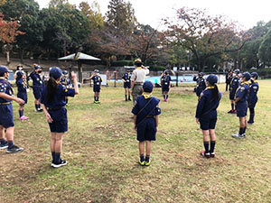 BS尼カップの見学を兼ねた月の輪だけの集会、今年で第2回です。7団の参加スカウトは1名ですが、現地に着くとボーイ隊も含めたくさんのスカウト仲間がいました。都市交歓の組で再開し、いざハイクへ! 7団のリーダーが担当した武庫川河川敷ではボーイの様子をあまり見かけなかったけど、他の場所では見学もできたみたい。2週続けての元浜緑地でしたがどちらも良い天気で楽しい集会になりました。組の仲間には今度はカブラリーで、ライバル同士として再会する予定です。(M34)