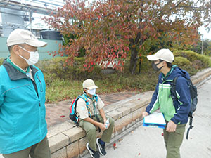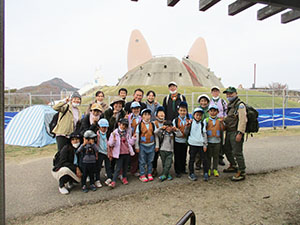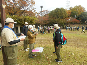 実行委員長の執念で快晴となり、777「7団、なかよく、70周年」テーマの団ハイクが実施されました。参加スカウトリーダー保護者を7つの混成班に分け、活動中や、募集中と書いた大きな幟を持ち、大物公園、城趾公園、戎神社、琴浦橋下田公園、出逢橋の各ポイントで問題をクリアしながら歩きます。尼ロックで温かいラーメンとお弁当を食べ、再び出逢い橋を経て元浜緑地まで歩きました。そして各班対抗の7つ星じゃんけんで最終決戦を行い、最優秀班表彰を行いました。今年度は半分以上がコロナ流行による活動自粛ですが、70周年を機会に今日みたいな元気な若い力が再始動してくれたら、まだまだ希望はありそうな70周年記念団ハイクでした。(K3)