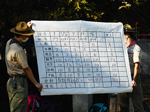 きょうは尼崎地区のボーイスカウトが集まって、日頃訓練しているスカウト技能を披露するBS尼カップの日です。あまななボーイ隊からは1班が参加しました。元浜緑地を中心のポイントラリー形式で課題に取り組みます。わがカワセミ班は一番遠いポイントを最初に引き当ててしまいましたが、各課題をこなしながらお昼頃にはゴールしました。ポイント合計の最終順位は残念ながら4位となり、次回に課題を残すことに。お疲れ様でした。(sakura)