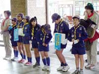 カブ隊は、阪神杭瀬駅とJR尼崎駅付近で寒さに負けず、半ズボン姿で行いました。今年もたくさんの募金を頂き、1組12,219円、2組21,910円、3組7,655円、4組14,470円で、団全体で129,472円も集まりました。