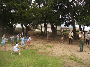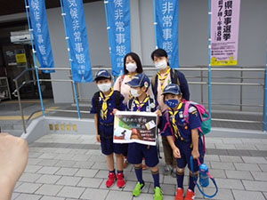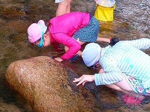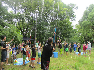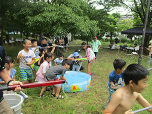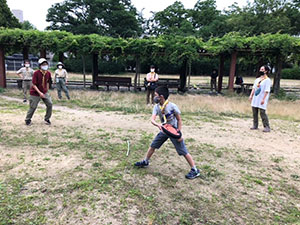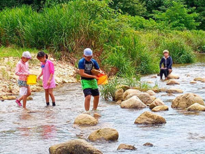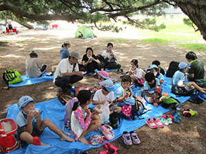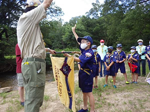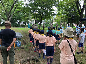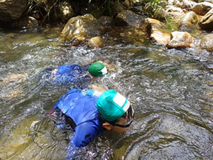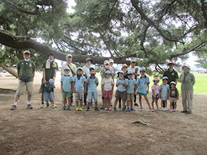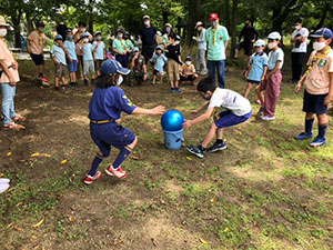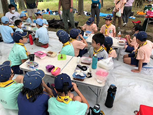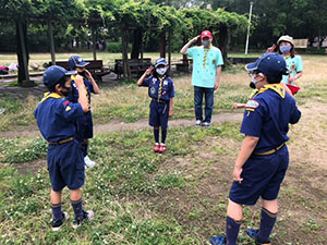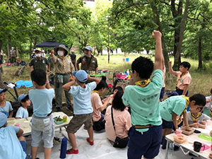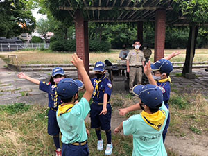 1年ぶりに仁川広河原へ、今年は沢登りも含めてがっつり水遊びをするため、再訪しました。そして嬉しいことに1名正式増員。カブ隊は12人になりました。広河原で新隊員のやくそくを終え、早速水の中へ。まずは身体を冷たい水にならし、その間に隊長が沢登りコースを確認。1組2組を午前午後に分けて沢登りを敢行しました。片方が行っている間、もう片方は河原で生き物や石探し。どちらも熱が入っていました。午後になってからパラっとスコールのような雨がきましたがすぐに止みました。しかし雷のゴロゴロ音もするためそろそろ退散。帰りは河原のゴミも拾い、『来た時よりも美しく』で帰れたかな。たくさん楽しんだ分、帰りのバスや電車ではとても静かでした。(M34)