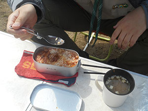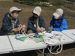 活動自粛解除後の久々の隊集会。春めいてきた大物公園で、ホームワークしか出来なかった進級課目を集中特訓です。単にハンドブックを読むだけでなく、先輩スカウト、リーダーの指導を受けみっちり絞られました。そして、お昼ご飯は各自メスティンを使っての初めての炊飯に挑戦。副食は抽選でふりかけや焼き鳥缶詰等いろいろ。おいしかったかだって? まーそれはいろいろ。経験がスカウトスキルの本筋です。(K3)