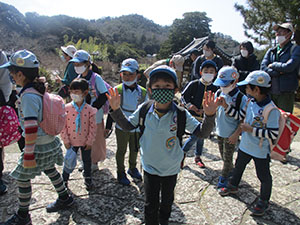久々の足慣らしハイク。JR中山寺駅からちょっぴり山道の最明寺滝を経由して満願寺へ。金太郎さんゆかりの満開の桜を見て、早めの昼食。ここから長尾台を経て石切山へ、久しぶりの山道で息を切らしましたが、30分もかからず頂上へ付き、大阪平野を一望出来る風景に感動しました。ここで瞬間息止めマスク下げで記念撮影。ここから釣鐘山までの下りが一番歩きにくかったですが、みんな元気に踏破。釣鐘山でおやつをいただき、後は長い石段を下るだけ。そして予定時間を1時間以上を前に川西池田駅に到着。解散時にもまだまだ余裕のある元気さでエネルギーを発散させていたあまななビーバー達でした。(K3)