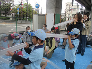 今年度はコロナにたたられ、そして最後の最後、雨に悩まされました。前日までまさに春の好天が続いたのに、オワカレーハイク当日に雨予報。しかも荒れ模様と。ぎりぎりまで実行か中止か迷いましたが、急遽場所を変更して、高架下の三ノ坪会館をお借りして年度最終行事「オワカレー」を実施することが出来ました。雨脚が強くなったり弱くなったりでしたが、みんな元気に集まってくれて、午前中は家探しゲームや、傘袋を使った息止めやロケットで遊んでいる間にオワカレーができあがります。今日は小学校を卒業したビーバーOBからのウインナーの差し入れがあり、一段と豪華なオワカレーを屋外でおなかいっぱいいただきました。そしていよいよ3人のビッグビーバーとのお別れです。何とか今日実施したかった大きな理由の1つがここにあります。みんなが揃って送り出すことが出来る日が今日しかなかったのです。天気は良くなかったけれど、無事ビッグビーバーは卒業です。バイバイビッグビーバー。(K3)