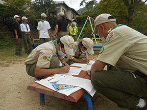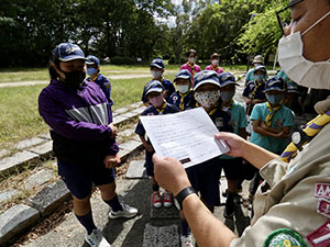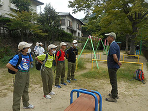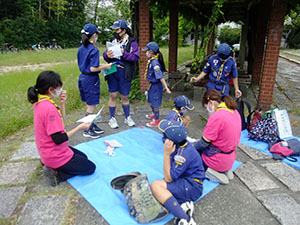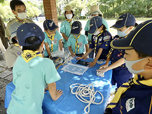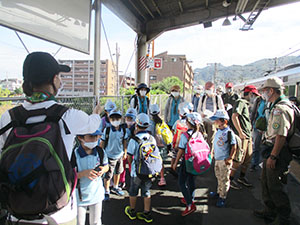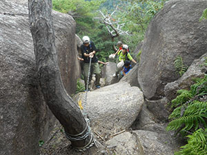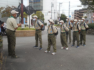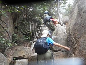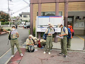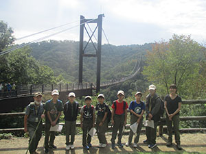 3年連続となる六甲荒地山登山ハイキング、7名のスカウト、3名の指導者そして何と5年振りに復帰したYスカウトの合計11名でスタート。今回のコースは鷹尾山からのコース。頂上の眺望は良く大阪湾が開ける。休憩もそこそこに岩梯子に向う。約1時間で到着しスカウトはスイスイ登り、新七右衛門グラを超えて荒地山で昼食。さすがにじっとしていると体が冷えてくる。早々に風吹岩に向かうが到着してビックリ!何と風吹岩の一部が崩落、新品同様のガードロープからそんなに経っていないだろう。予定通りクロスベアリングと16方位の課題をこなしてロックガーデンを下山。山芦屋公園でセレモニーを終えて帰途についた。(ひらパー)