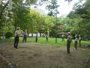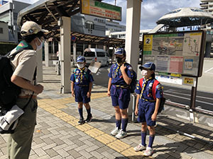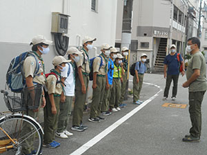 団でのスカウトデーの活動が中止となり各隊での活動となった今回、ボーイ隊はいつ来るかわからない南海地震による大津波のハザードマップ作りと実地調査を行いました。午前中は基本訓練の復習と尼崎市の津波ハザードマップ作製、年功章タグの作成をすこやかデイサービスセンターで行いました。昼食後、市南部の防潮堤まで自転車で移動、防潮堤の高さを実感した後、尼ロックへ移動、大阪湾と尼崎港の潮位差の説明を受けた後、北運河を経て武庫川左岸堤防へ。ここでも堤防の高さと決壊時の被害予想を隊長から聞いた後、大物公園に帰着。入隊時にたてた誓い「いつも他の人を助けます」を思い起こして解散しました。(ひらパー)