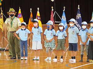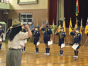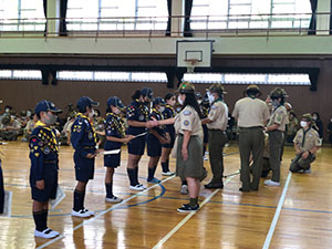 第69回地区推進大会が市立北小学校で開催されました。コロナ流行下でいろいろな対策を講じ、参加者も被表彰者限定という中で行われ、7団からはビーバーが3名、カブが3名、ボーイが1名、ベンチャーが1名の精励章を授与されました。ちょっぴり寂しい感がありましたが、今後の活動を継続する上で新しい形の模索です。(K3)