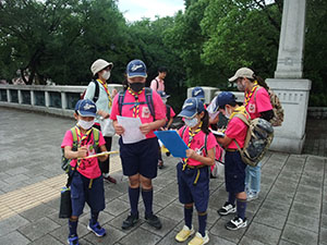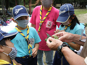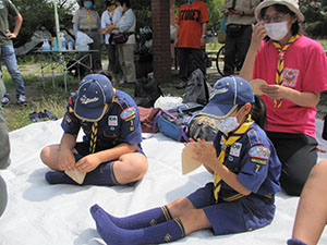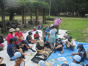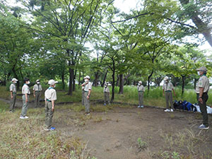 活動自粛期間が3か月に延びまくったボーイ隊は大物公園にて隊集会を行いました。セレモニー時、熱中症対策としてソーシャルディスタンスを確保した後マスクを外す。入隊上進式以来となるので各班長と次長の確認、役務分担を終えた後集散訓練。新入隊員もきびきびと動きます。その後各級別に講義を受け、新入スカウトは初級に近づく。上級スカウトは自粛期間の過ごし方を各自発表。昼食後は上級スカウトは健康と救急について隊長から、新入スカウトは副長からロープワークを教わる。ほぼ予定通りの訓練を終えて久しぶりの集会を終了しました。(ひらパー)