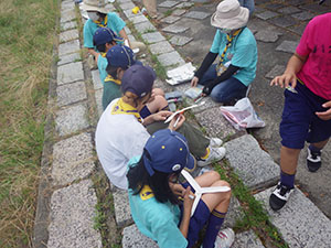 今日は、ビーバー隊と合同で活動をしました。午前中は、一緒に大物公園なぞときやジャンケンゲームで遊びました。お昼ご飯はコロッケパンとマカロニスープをビーバーと一緒に食べました。午後からは、気温が上がってきたため、急遽、水鉄砲合戦をしました。みんな、着替えがないなか、ずぶ濡れになりながら楽しく活動していました。次に、ドッチボールをして、大人チームが勝ちました。優秀組は1組のNスカウトが、お昼ご飯たくさん食べたので1組を優秀組にしました。(ミッキーの手)