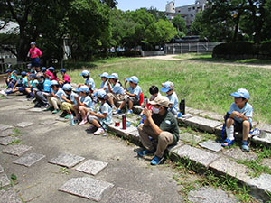 コロナ自粛解除後、初めてのハイク。新一年生ですぐ骨折した、I君の見送りを受け、西宮御前浜に行ってきました。新生活スタイルでの電車移動で消毒、マスク、3密回避など充分配慮しました。大物公園以外の久しぶりの遠出で、幸い梅雨の合間の快晴で、気持ちよく海辺でのあそびをたのしみ150%自然を満喫しました。やっぱり野外は最高!(K3)