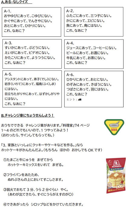 カブ隊も、活動はできておりませんが、先日作ったTシャツを届け、併せて宿題として問題を出し、葉書で答えを送ってもらいました。チャレンジブックの料理に挑戦し、写真を送ってくれたスカウトもいました。