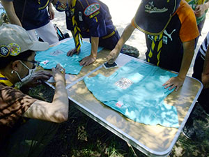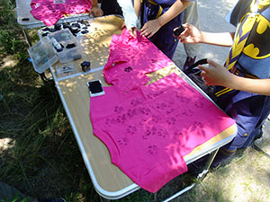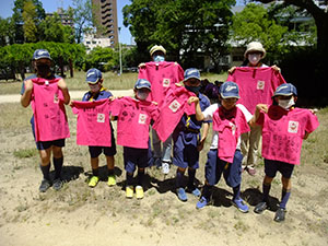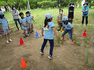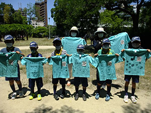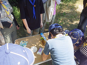 2ヶ月ぶりに顔を合わせて集会をしました。いつものTシャツ作りから始まり、集散訓練、など4月の集会メニューなのですが6月に野外ということで暑い暑い。ちょこちょこと休憩もしつつ、やっとお昼。昼からは計測でこれもおなじみの内容ですが、最後はFリーダーの新ゲームを楽しみ、キムス&人間キムスで観察力を鍛えました。これから、本領発揮だ!(M34)