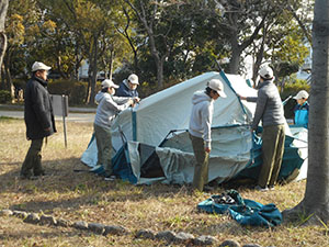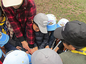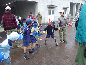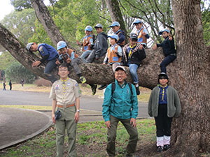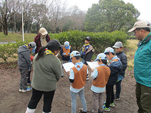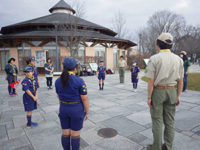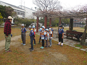 団スキーが中止となり、プログラムの余裕が出来たので、登録前のだめ押しでリスの道と月の輪の合同集会を実施しました。場所もおおきく雰囲気を変えて初めての堺市にある広大な大泉緑地まで足を伸ばしました。月の輪のお兄ちゃん、お姉ちゃんに教えてもらいカブ集会のシュミレーションを行い、カブの基本動作を習いすべて行いました。お昼はスープとホットサンド卵焼きでお腹をふくらまし、公園の遊具で遊びました。ちょっと距離がありましたが、緑の中での合同訓練どうだったかな? やっぱりスキーのほうがよかったかな?(K3)