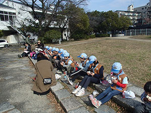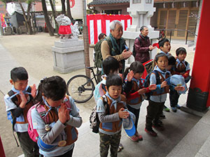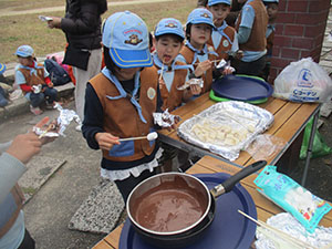 春のようなポカポカ陽気、今日の隊集会は7団地域の神社を9社巡るミニハイク。パパママチームは4名+1で別行動。ビーバーはリーダーとともに全員で出発。最初の吉備彦神社で、お参りの作法を学び以後これを行いました。7社回ったところで時間切れとなり、神様には失礼ながら次回に延期。パパママチームはきっちり時間通りに回り課題もクリア。お昼は大物公園で副長の用意した豚汁で昼食、おいしいおいしいと言いながらなんと5杯おかわりした人がいたそうな。おやつは2月恒例のチョコフォンデュ。口の周りをチョコだらけにしみんなでおいしくいただきました。(K3)