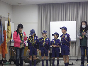 スキーがなくなり、B-P祭となった為大物公園集合後、東部浄水センターへ移動し式典を行いました。昨年と同じ場所、概要ですが、エールマスターはベンチャー・ローバーの三姉妹が楽しくやってくれ、スカウトたちも喜んでいました。午後も昼食後ゲームをしましたが、やっぱりちょっと消化不良だったかな? 来年こそは雪が積もってたらいいな。(M34)