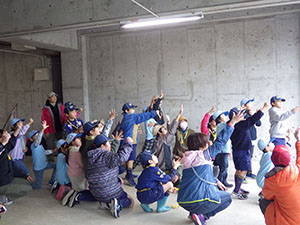 今年の耐寒登山は有馬富士。現地まで遠いですが、JRで一本で到着します。公園のパークセンターには有馬富士の動物について楽しい展示がたくさんあり、調査もそこそこに写真を撮ったりして楽しみました。登山は最後の10分ほどだけが急坂で大人は息が上がりますがスカウトたちは楽しかったみたい。帰りは芝生広場でゲームをし、遊具でもたっぷり遊んで下山しました。(M34)