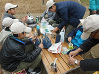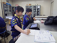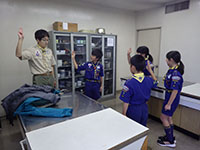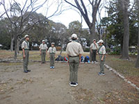 朝から曇り空の中大物公園とすこやかデイサービスセンターにて進級課題に取り組む隊集会を行った。初級スカウト5名、2級スカウト2名とリーダー3名でスタート。2級のSスカウトは半年ぶりの復帰。初級は追跡サインの暗記、2級は追跡サインの設置を行い全員無事に小田南公園に到達。次いで初級はロープワークと手旗、2級は大物公園の2点間を川幅と見立て三角法で測量。どちらも満足のいく出来栄えに昼食の味噌汁サービスで暖まった後はすこやかデイサービスセンターに移動。午後からは座学で課題を着々とこなし進級の目処もどうやらついてくる。あと1〜2回の隊集会で多分進級できると思う。(ひらパー)
