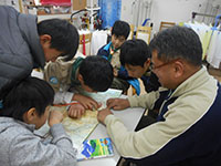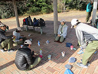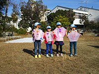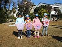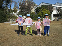 1月とは思えない暖かさ、快晴そして無風(>_<)。室内で凧作りを行い、完成後戸外で凧揚げのパターンですが、今回は青空の下で、シートを敷いて凧作り。完成後、稲川公園に移動して凧揚げでしたが、前述の通り無風状態で、各自全力疾走凧揚げとなりました。約1時間走り回り、昼食。たっぷりのカレースープでお腹もいっぱい。ボールゲーム後またまた凧揚げでしたが、状況はあまり変わらず残念でした。OBのJSDAFからのお土産をじゃんけんゲームで分け盛り上がりました。(K3)