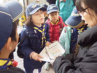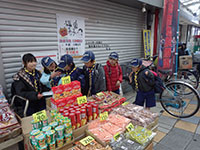 今回は、1月中に行われている尼崎怪獣防衛の謎解きゲームに挑戦。中央商店街近辺に隠されたヒントを見て、怪獣防衛隊として謎解きをして行きました。午前中はサンシビック尼崎で組集会をし、昼からスタート。両組、一進一退、ああでもない、こうでもないと話し合いながら進んでいきます。出屋敷駅のリベル地下で無事クリア! マクドナルドのポテトをまた?ご褒美にもらい、帰ってきました。(M34)