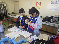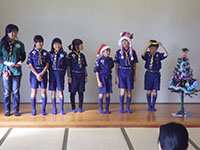 いよいよ年末も近づき、クリスマス会です。わずかな練習時間しかありませんでしたが、発表会ということで各組ソングの披露をしました。課題曲と自由曲があり、どちらも良い出来。それ以外には、今年は1枚でしたが手品の披露や、リーダーのゲームや、クイズ、最後はプレゼント交換で盛り上がりました。優秀組はソングの声が大きかった1組。午後はくまスカウトが残り、月の輪集会をしました。人数の少なさを生かして、1月集会のバルーンアートの試行、ウォッグルの製作、お菓子作りなど、フットワーク軽く色々やってみました。料理の残りも分担して持ち帰り、いつにも増しておみやげいっぱいなくまスカウト達でした。(M34)