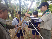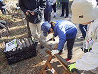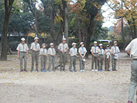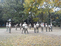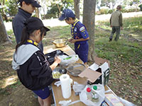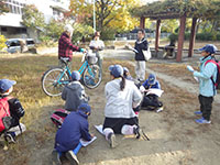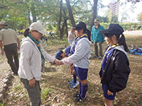 今日は尼崎の森中央緑地までサイクリング&森つくり活動です。まず自転車の部分ごとの名称を勉強し、タイヤの空気を確認して出発。45分程かけて到着。100年かけて森をつくるお手伝いをしました。前半は除草。ひっつきむしの草のとげとげがすごかった。後半は薪割り体験。みんな楽しすぎて時間ぎりぎりまで何回もやりました。その後茶話会でニンジン茶としょうがレモンティーをごちそうになり、5個のプレゼントをかけてじゃんけん大会です。SスカウトとFリーダーが見事ゲットしました。中身はなんだったかな? 昼食を食べていると参加されていた某企業の方からお菓子を頂戴しました。ラッキー! 午後からは組集会で自転車博士を取得する為、帰路のコース決めとクリスマス会の歌の練習をしました。これからは毎年定番の活動になりそうな予感。(yukko)