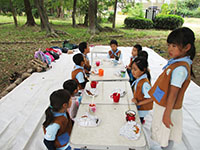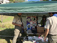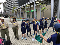 今年は4名のスカウトと1名のデンコーチ、2名の指導者(デンリーダー、団長)の7名で7団から参加。岐阜西部地区との交歓となりました。行きは各務原宇宙博物館の見学からですが、連休初日とあってかさっそく渋滞にまきこまれます。なんとか到着、クイズを解いて見学。その後、自然の家に到着しさっそく大垣のスカウトと交流ハイク、キャンドルサービスも一緒にして盛り上がりました。あっという間の1日目が終わり、2日目は自然の家敷地内でカブラリー。尼崎からやってきた忍者のコーナーを含む多くのコーナーで楽しみました。今回はこちらからの缶バッチだけでなく、岐阜からも記念缶バッチをいただき、さらにチーフリング、帰りには柿のお土産もいただいて帰ってきました。(M34)