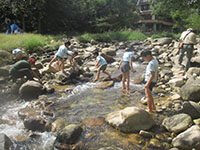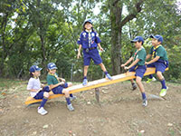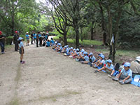 地区、団行事が続きましたが、久々の隊行事で甲山ハイク。満員のバスで、途中北山公園で読図訓練のパパママ7人が分離。ビーバーはそのまま甲山大師前まで行き、神呪寺参拝後、甲山山頂へ。読図訓練チームは迷うことなく無事北山公園を抜けきり、森林公園で合流しました。昼食後仁川広河原に移動、ちょっぴり冷たい川でサワガニ取り、ところが今年はさんま並みの不漁でカニ取り名人のこはパパもゲットできず、少量のカニとアカハラなどでした。帰りのバスも満員でしたが、さわやかな秋のハイクでした。(K3)