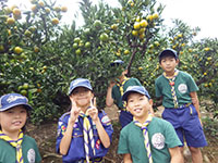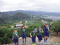 本日はみんな楽しみにしていたみかん狩り。前日まで台風がどうなるのか心配でしたが、みんなの思いが通じて決行となりました。前回のルートとは違い今回は4回乗り換えです。何回も切符を買わないといけなくてH副長は切符を買い間違い、勘違いで違う駅の改札出てしまいみんなに迷惑をかけてしまいました。ごめんなさい。しかし何とか予定通り。段々畑の超大変な坂を登り、途中事務所辺りで85才(見た目70代)のおじさんにみかんの話を聞き、頂上に到着。組ごとで時間までみかん狩りと迷路とアスレチックを楽しみました。下見をした時、青かったみかんたちは1週間でだいぶんみかん色になり甘くなっておいしかったです。みんなたくさん食べて満足したようでした。でも帰路にまたまたトラブル発生! 今度は人身事故があり上ノ太子の2駅先の古市で1時間近く待たされ大物に到着したのは17時頃となってしまいました。今日の優秀組は善行をしたF君の2組です。1組も頑張ってね。朝早くから1日お疲れ様でした。来年はぶどう狩り?(yukko)