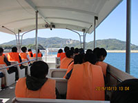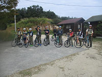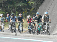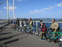 10月14日、多々羅キャンプ場で1泊し、今日は尾道まで39kmを走破しなければなりません。帰路のバスが4時過ぎで、課題の一つである尾道ラーメンを到着後食べなくてはいけないので、2時完走を目標に8時半に二日目をスタートしました。いきなり橋の入り口を間違うハプニングもありましたが、無事多々羅大橋を通過、愛媛県から広島県に入ります。次の生口島では「島ごと美術館」の野外アートオブジェを五つ以上見つけ、課題の一つを終了。そしてもう一つの課題ケーキ屋「しまごころ」でレモンケーキを食べ、元気100倍で因島へ向かいます。生口橋を余裕で渡り、因島着、早めの昼食を摂り、ぐんぐん距離を稼ぎます。途中、おやつのはっさく大福をゲットし、最後の因島大橋を渡りきり、向島へ。快晴で気温は31度でしたが湿度は低く汗もかきません。そして駅前渡船に乗り、13時18分しまなみ海道ゴールの尾道駅前にとうちゃこ! もちろんその後の班行動でそれぞれおいしい尾道ラーメンを食べ最後の課題終了。高速バスに乗り大阪へ、21時50分全員無事に尼崎にとうちゃこ!(K3)
