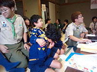 インターネット電話を使って世界のスカウトと交流できるイベント「JOTI」が開催される期間となり、カブ隊でも臨時で集会を行いました。1団・20団の皆さんとも一緒に、あいさつの練習などを行い、いざ接続してみますがなかなかうまくいかず…、つながったのは国内3か所の団でした(岸和田・茨木・栃木)。初めての挑戦だったので、要改善だったかな。その後は、県カブラリーにむけてお面の作成やソング練習などを行いました。(M34)