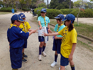 雨の心配はなくなって、曇りながら気温はかなり上昇しました。少人数ながら、ギャングが二人加わって新年度初ハイクとなりました。いつもの野山と少し趣向を変えて、今回はアーバンハイクで神戸海洋博物館。阪神元町駅から歩き、中突堤のポートタワー前で神戸で一番低い山、登山。それからお目当ての海洋博物館。これは船好きのY副長とYM副長の推しですんなり決まった企画です。入口に入ると歴史的な帆船模型が迎えてくれ、その中の一つ、咸臨丸の日の丸についての話も聞きました。カワサキワールドではいろいろの体験ゲームやバイク乗車も体験し、お昼ご飯は広いメリケンパークで海を見ながらいただきました。公園内はいろいろな催しでたくさんの人でにぎわっていました。それから神戸港震災遺構を見学し、三宮まであるきましたが、二人のギャングは抱っこも要求せず最後まで歩きとおしました。(K3)