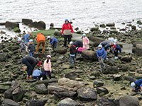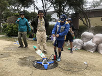 センバツ高校野球の二日目が例年ビーバー隊のオワカレーハイクの日となります。今年もその日がやってきました。あいにくの戻り寒波でしたが、雨よりもズーと良く、お天気も何とか持ちました。スカウト・ギャング18名、リーダー・保護者23名、体験2名、生後4ヶ月の赤ちゃんの44名が甲子園浜に向かいました。いつもなら自然観察センターで遊ぶのですが、今回は足を伸ばして今津浜で滑り台。カブのロケット発射を見て、カレーの昼食。浜でカニを大量に捕まえて、おやつ。そしてビッグビーバー卒業式を行い、2018年度最後の行事を終えました。(K3)