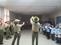 今回のB-P祭は、凧あげにもよく使われる東部浄化センター。カブ・ビーバーともにフルメンバー参加でとても賑やかですが会場は室内なので結構ギュウギュウ。その代わり、カブのスタンツもよく見てもらえてよかった。今回は、いろいろなリーダーがゲームをやってくれ、中でも外でも1日中よく遊んだ1日でした。優秀組は、スタンツの声がよく出ていた2組に決定。(M34)