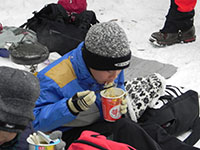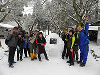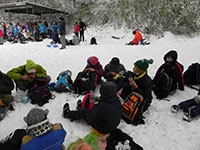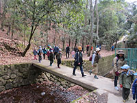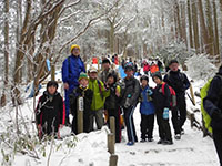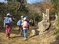 節分の日、中山奥の院までの耐寒ハイクです。天気が心配でしたが、昨日から日中は晴、曇り後夕方から雨に変り。何よりも温かいハイキングになりました。中山寺は節分の豆まきがあり、かなりの人出です。登りはじめると暑くなって、上着がいらなくなります。順調に歩き、奥の院に11時15分に到着、参拝後やすらぎ広場へ移動、ここで昼食。たっぷりの広さに興奮したビーバーたちは走り回っていました。カップラーメンを30食用意していましたが、参加人員は33名。にぎやかな耐寒ハイクとなりました。(K3)