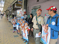 年末恒例のユニセフ募金(ハンドインハンド)を行いました。ビーバー隊は三つに分かれ、ギャングはボーイ隊と一緒に杭瀬駅前で、後の2チームは杭瀬商店街で、元気な声で協力を呼びかけました。1時間半の短時間でしたが、スカウト達の熱心な呼びかけで多くのご寄付をいただきました。感謝!(K3)