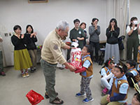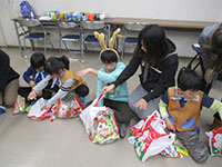昼間のユニセフ募金の後はクリスマス集会。いったん家に帰り、会場の小田地区会館に集まります。まずはスープとアメリカンドッグ、鶏皮唐揚げ、リンゴ、そしてケーキをみんなでいただきました。お腹がふくれると、BP祭での発表用のソング練習。そしていよいよ、キャンディ交換です。隊長スペッシャル2個はなんと新入隊員がゲット。そのほか、クリスマスカチューシャもじゃんけんゲームで分け、楽しい時間があっという間に過ぎたのでした。(K3)