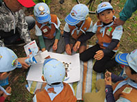 隊活動も後半戦に入り、今日は初級スカウトの仕上げとなるシングルハイクの下見です。9:00、JR尼崎集合さくら夙川駅へ、夙川を遡上し途中の公園でセレモニ—。今回のコースは銀水橋から北山ダム、昼食後甲山の頂を制覇したのち神呪寺、住宅街を経て阪急夙川線沿いから夙川左岸をスタート地点まで下るという、2級、1級スカウトには慣れた道のりです。初級は月の輪時代に夜間ハイクで来た道ですが昼と夜では大違い、しっかり野帳をつけながら進みました。今回のハイクで一番びっくりしたのは帰りのさくら夙川駅で、なんと長期休眠中のN副長を見つけました。(ひらパー)
