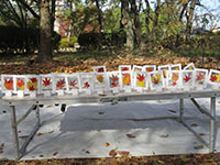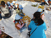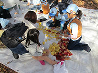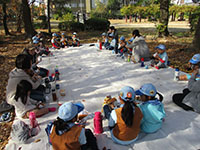 12月になりましたが、まさに錦秋の大物公園で隊集会です。風もなく、日差しもちょうどよく,気持ちのいい活動が出来ました。公園の色とりどりの落ち葉を拾って各組が魚の造形を作ります。ユニークな発想でいろいろな魚が出来ました。また、秋の切り取りで「これぞ秋」を写真トレイに挟んでいきました。お昼はコロッケバーガーと野菜たっぷり汁でお腹いっぱい。ピラミッドじゃんけんや親子対決じゃんけんで楽しんだ後は,おやつ。今日は大シュークリームを食べ、その後OB哲ちゃんのお土産、宮島の鹿の鼻くそを味わい、今日の集会を終えました。(K3)
